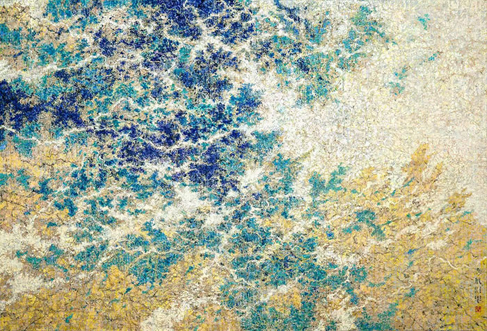 蒋乃骏,《春风十里》,亚麻布、宣纸、油彩、丙烯,220×150cm,2023年;作品参考AI生成的图像进行再创作