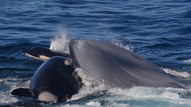 不过,虎鲸会攻击蓝鲸这样的巨人吗?毕竟大海捞针那么多,何必冒险去和蓝鲸斗?