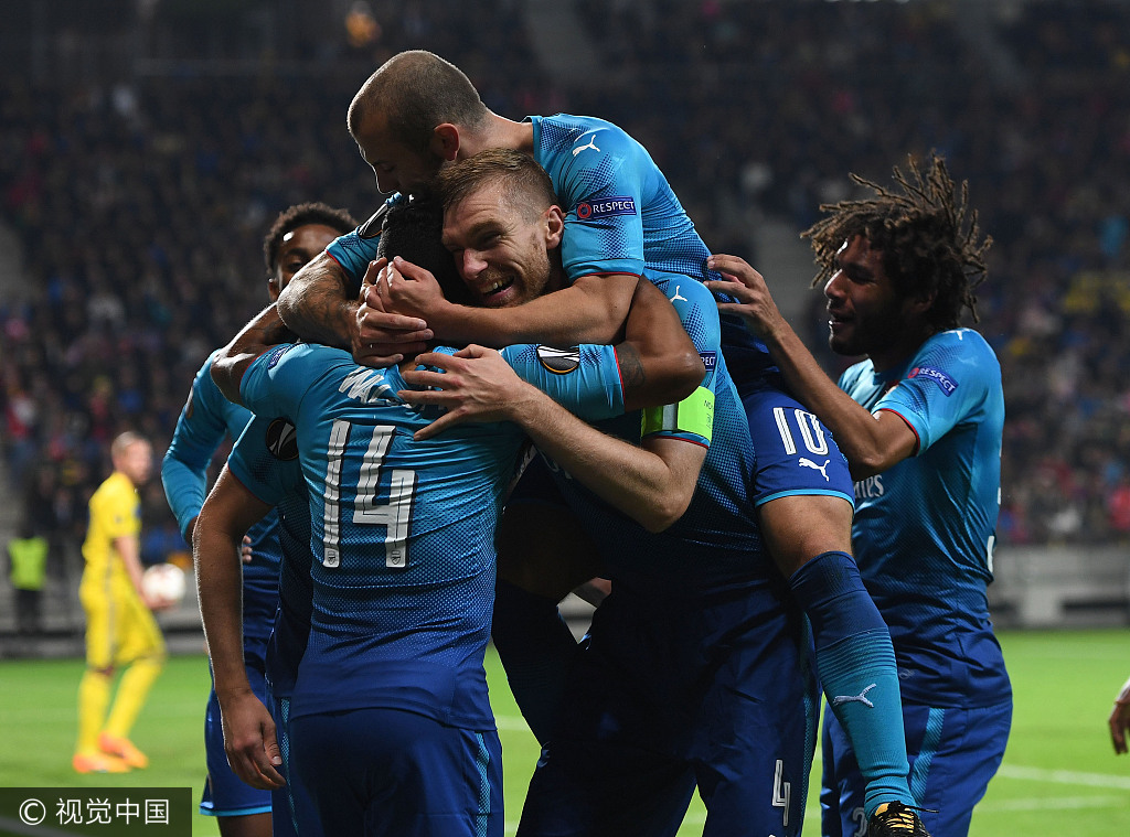 北京时间9月29日凌晨,欧联杯小组赛第2轮一场焦点战里,阿森纳客场出战鲍里索夫。沃尔科特梅开二度,吉鲁点球建人生就是博官方平台功,霍尔丁破门,鲍里索夫的伊万尼奇和格德切克各入一球,阿森纳4:2战胜鲍里索夫,赢得欧联杯小组赛两连胜。