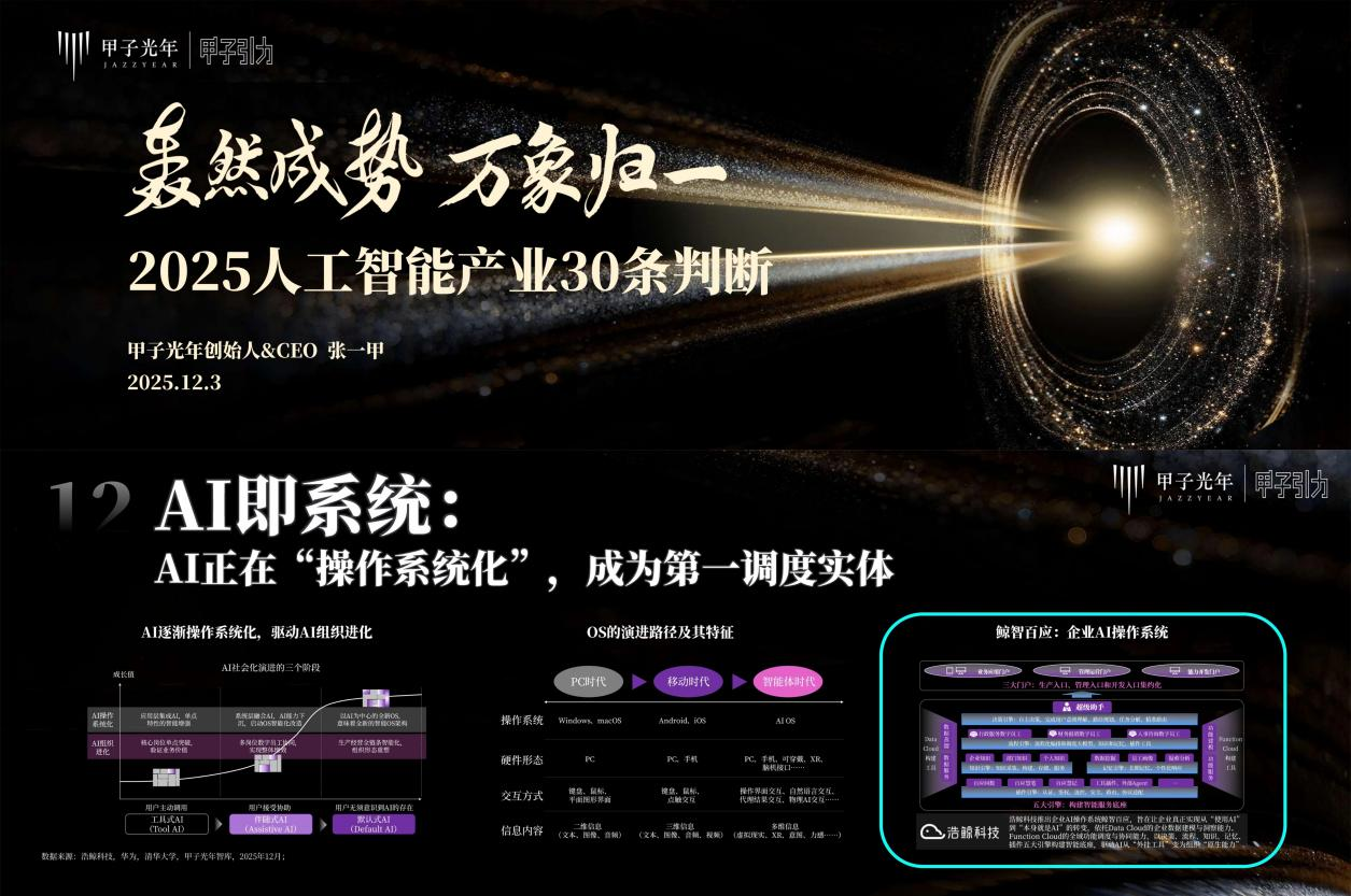 主论坛上,甲子光年创始人&CEO张一甲现人生就是博官方平台场重磅首发《2025人工智能产业30条判断》,